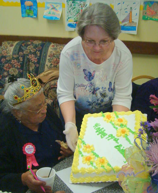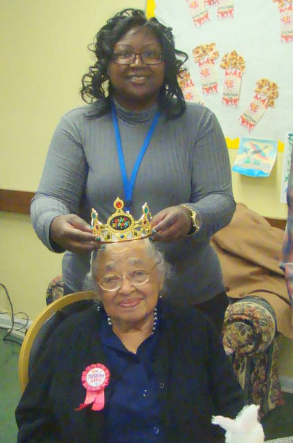 The celebration at the Senior Center included a number of games, some music and, of course, cake and ice cream. Prior to the celebration, Melvin was crowned and given a red ribbon that showed her as the birthday girl.