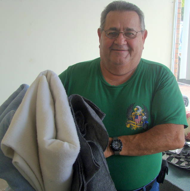 Roger Lee Grunder, the father of the late Roger Lee Theodore Grunder, brought three blankets to the Bladen Journal as a donation to the newspaper’s fifth annual Roger’s Wish project. His donation brought the first-week total to 22 items. The collection for the county’s homeless and needy will continue through Oct. 31.