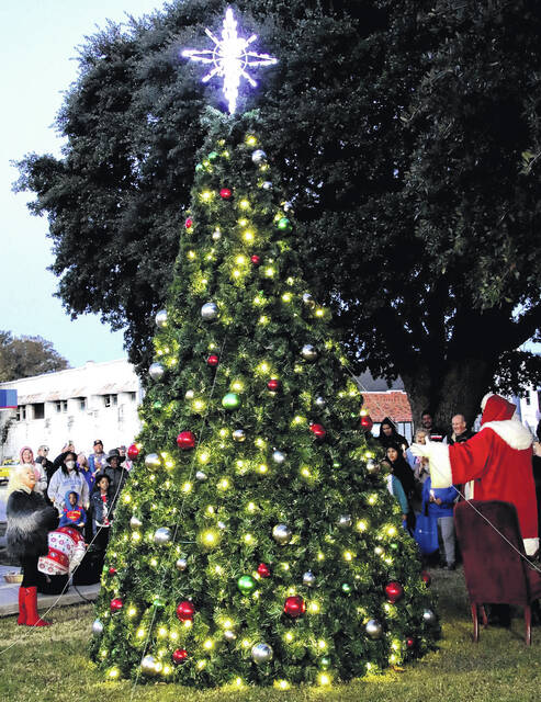 Santa arrived in a Dublin Fire Department fire engine to the cheers and shouts of many kids waiting to sit on the big guy’s lap to share what their Christmas gifts should be. After a welcome from Dublin Mayor Horace Wyatt and a blessing prayer from Dublin First Baptist Church, Pastor Jason Lee, the tree was lighted and Santa’s chair was placed by the tree as many from the town came to support the event.”
