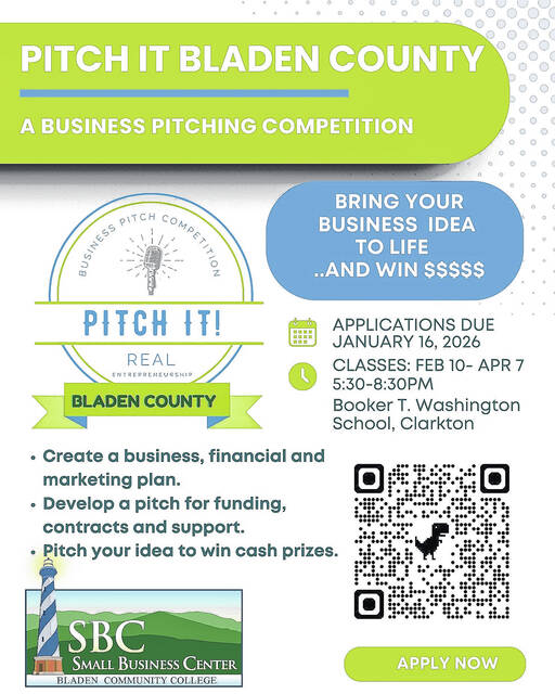 DUBLIN, N.C. — The deadline to apply for Pitch It Bladen County, a new business pitch competition and training program, has been extended until January 16. The Small Business Center at Bladen County encourages any aspiring entrepreneurs to make their dreams happen in 2026.