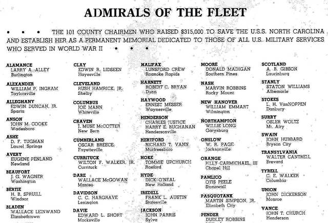 There was a great fundraiser statewide to bring the USS North Carolina back to become a battleship museum in the early 60s and the people of Bladen County were a great part of that, led by local Mayor and business owner Wallace Leinwand.