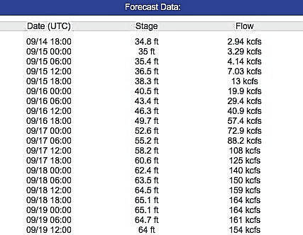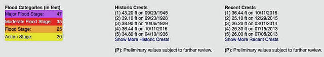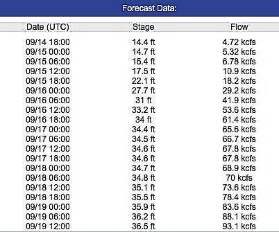 Forecast data goes into Wednesday, when the river would still be climbing to more than 36 feet.