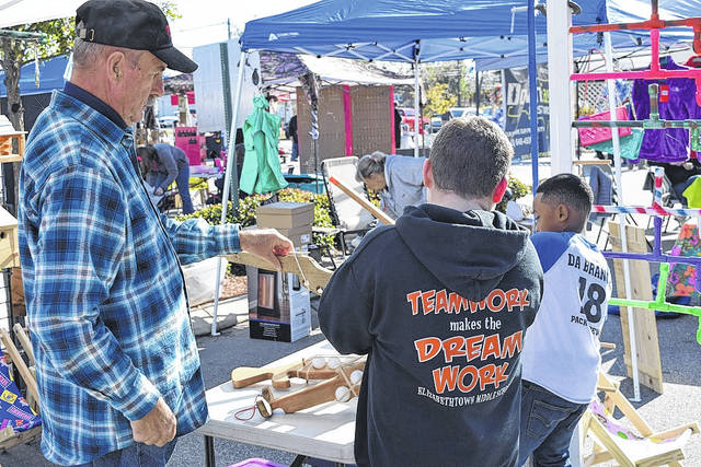 Rubberband guns and marshmallow shooters fascinated Mason Smith, center, and Braylon Cromartie, right. Arlee Tripaldi, left, was on hand to show the spectators how it was done.