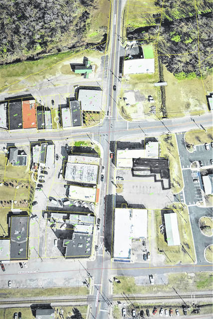 This map shows a previous planned location for the new style of building to help downtown Bladenboro. Chuck Heustess, Bladen County’s director of economic development, said a new plan may increase the distance away from the top light and the Bryant Swamp Canal.