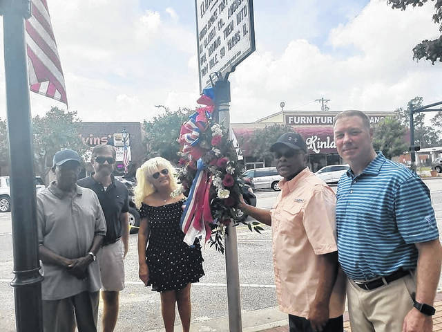 On Friday in downtown Elizabethtown, Mayor Sylvia Campbell and others laid a wreath at the site of a state historical marker. Smith gave a brief explanation of the past basically while being in the middle of the road. She reminded people that freedom isn’t free.