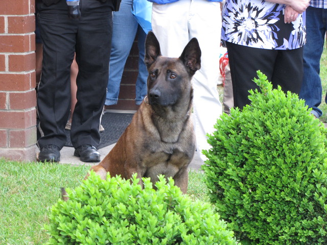 A couple of months ago, the Bladen County Sheriff’s Office obtained a second trained K-9, Jaxx (which, his handler said, could not have been done without help from the community), and the 18-month old Belgian Malinois and his handler, Cpl. Clark, demonstrated Jaxx’ skills for the crowd. Clark hid some narcotics in a bush, which Jaxx promptly found in response to Clark’s hand signals. Clark enlisted some of the children present to distribute on the ground some articles, which, like the narcotics, presented no problem for Jaxx’ good training.