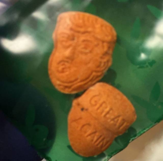Indiana State Police said in a statement that a face is stamped on the front of the illegal pills and the rear bears the words, “great again,” in apparent reference to Trump’s “Make American Great Again” campaign pledge.