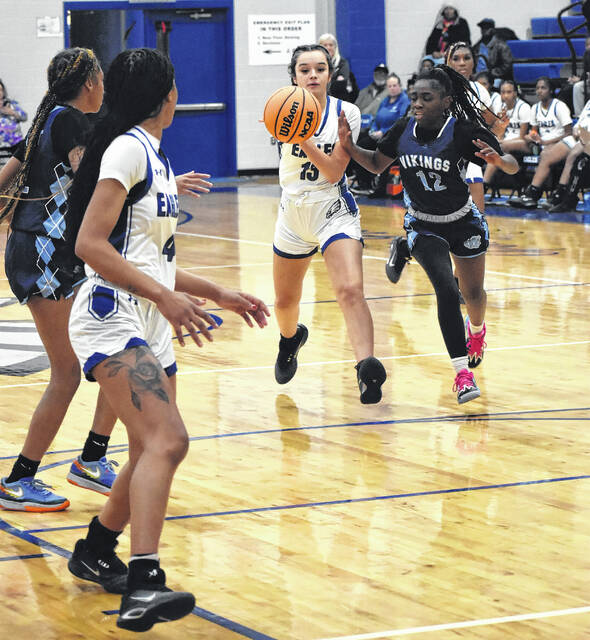 In the JV boys’ game, Lakota Schmale and Benjamin Len each scored 12 points and Joel Lewis and Fox Sutton each added 10 as the Eagles (9-10, 8-1 Carolina) rolled to a 56-37 triumph to open the tripleheader.