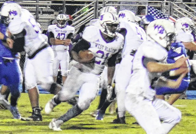 Tra’shawn Ballard of West Bladen rumbles for part of his 68 yards rushing.