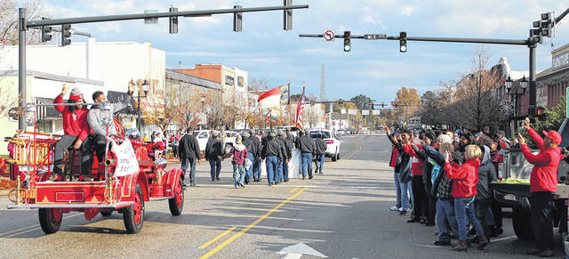 Moving down West Broad Street, grand marshals Larrell (left) and Farrell Murchison enjoy the afternoon in the Elizabethtown-White Lake Area Chamber of Commerce Christmas parade.