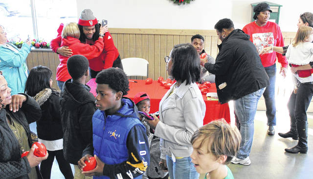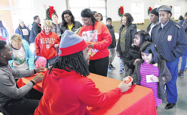Farrell (left) and Larrell Murchison welcomed supporters by the dozen on Sunday in the Cape Fear Farmer’s Market after serving as grand marshals of the Elizabethtown-White Lake Area Chamber of Commerce Christmas parade.