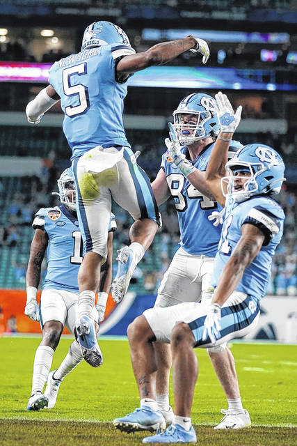 Sam Howell passed for 234 yards and three touchdowns, two of them to Josh Downs, for the Tar Heels (8-4). North Carolina was without leading rushers Javonte Williams and Michael Carter, leading receiver Dyami Brown and top tackler Chazz Surratt — all of whom opted out of the bowl game.